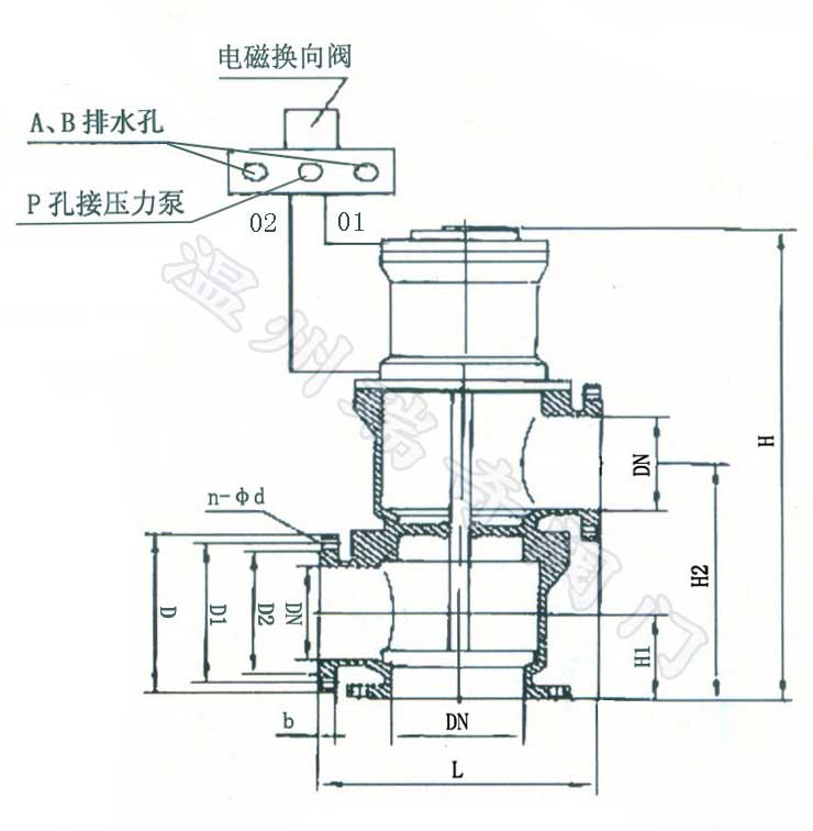 本閥主要由閥體、閥板、閥桿以及電磁換向閥組成。該閥具有操作簡單、啟閉靈活、密封可靠、無噪音等特點, 是實現(xiàn)自動控制、集中控制和遠(yuǎn)程控制的理想設(shè)備。