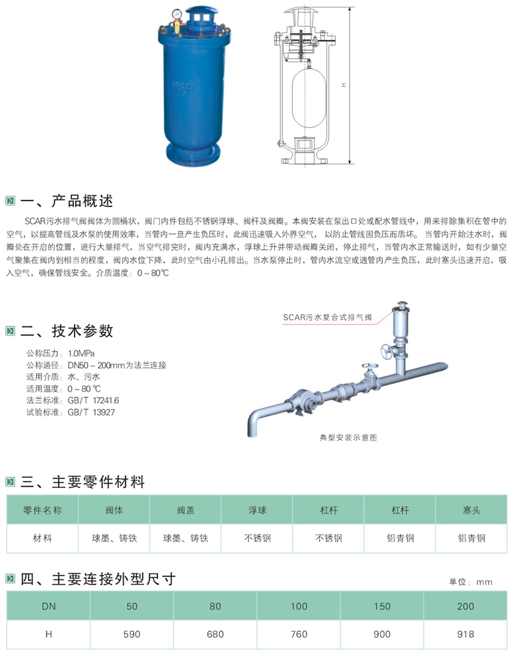 2、本產(chǎn)品是專用污水管道工程的排氣閥。