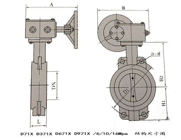 六、【軟密封蝸輪對(duì)夾蝶閥D371X外形連接尺寸】單位:mm