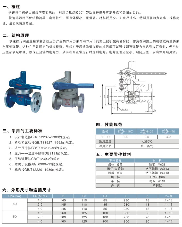 快速排污閥是由閘閥演變而來的,利用齒輪轉(zhuǎn)90℃帶動(dòng)閥桿提升實(shí)現(xiàn)開啟和關(guān)閉的目的。