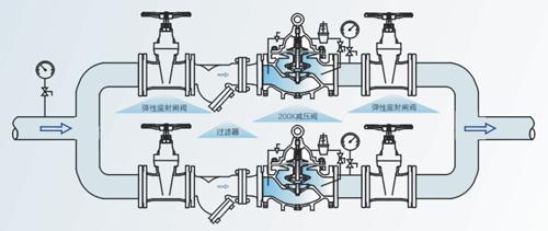 給水及其他工業(yè)給水系統(tǒng),通過調(diào)節(jié)減壓導(dǎo)閥,即可調(diào)節(jié)主閥的出口壓力。出口壓力不因進(jìn)口壓力、進(jìn)口流量的